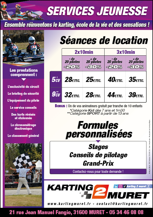 Dans le cadre de vos activités de collectivités, le club Karting 2 Muret vous accueille sur ses pistes en plein air pour des sessions de kart :